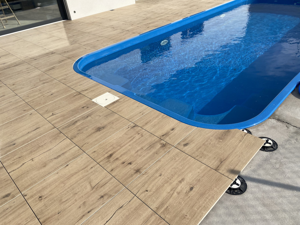 Přinášíme Vám fotografie z realizace od spokojeného zákazníka, který si nechal postavit novou terasu na našich podložkách. Parádní terasa s bazénem je realizována na nejoblíbenější produktové řadě stavitelných podložek pod dlažbu NEW MAXI.