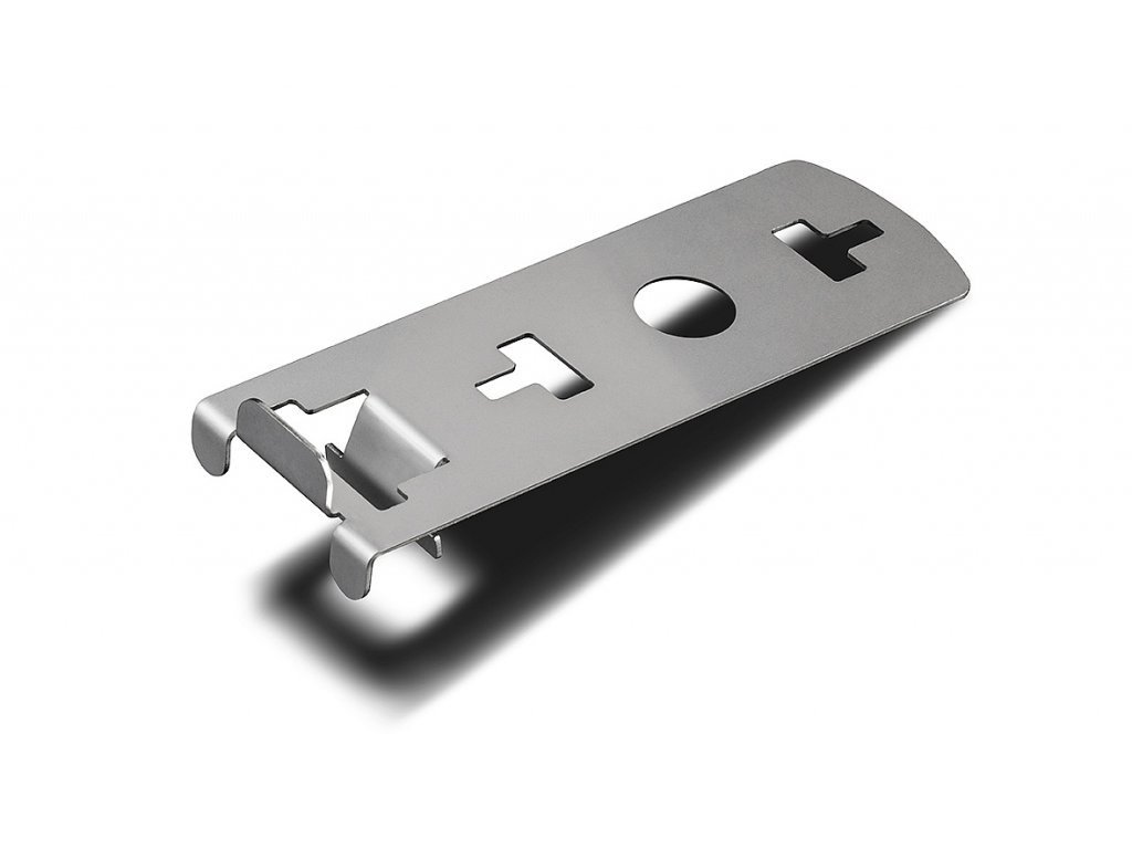 Klip na uchycení dlažby vrchní 2cm pro terče Eterno SE. Klipy k uchycení dlažby jsou navrženy tak, aby se snadno vyřešil častý problém, tj. jak uzavřít terasu po obvodu, když po obvodu není stěna, popř. atika. Realizace soklu pomocí klipů pro uchycení dlažby je inovativní, elegantní a snadné. Systém se skládá z horních a spodních klipů, do kterých je vložena na míru uříznutá část dlažby. Vhodné pouze pro dlažbu o síle 2cm. Neslouží jako zábrana proti pádu dlažby z neukončených ploch (teras, balkónů, aj.). Materiál nerez.