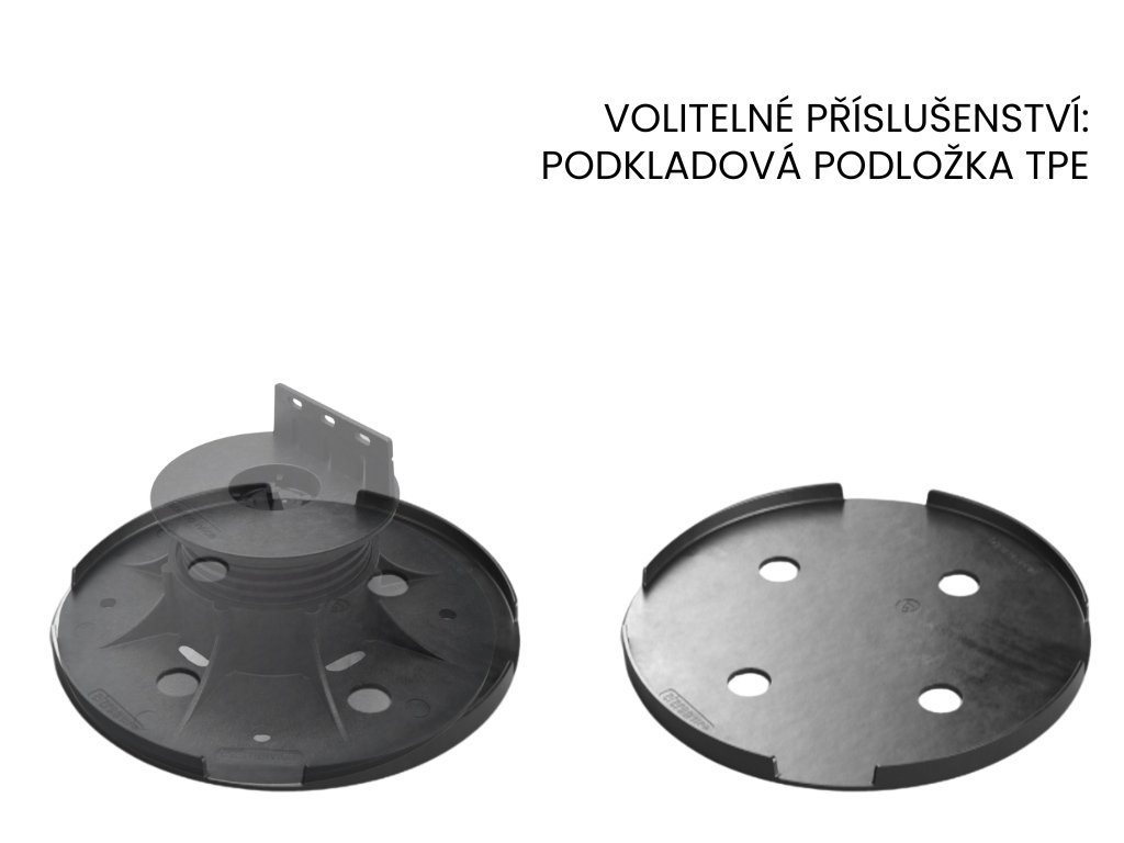 Rektifikační podložka pod dřevěná i WPC terasová prkna a rošt ETERNO SEW2 se samonivelační hlavou, nastavitelná v rozmezí 50 - 75 mm