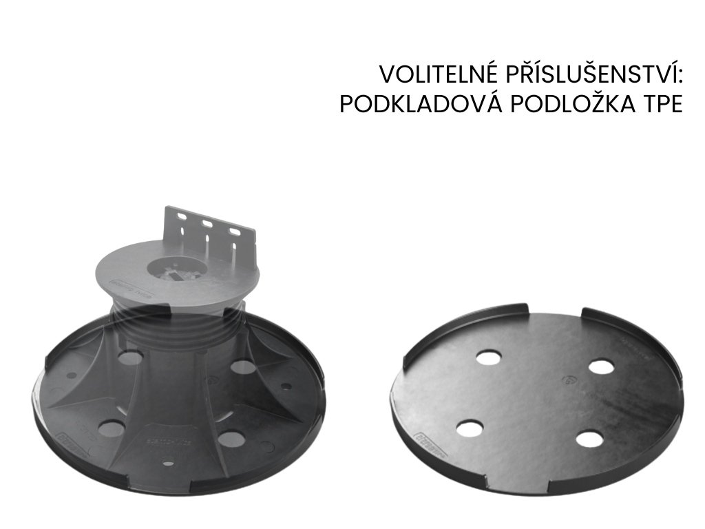 Rektifikační podložka pod dřevěná i WPC terasová prkna a rošt ETERNO SEW3 se samonivelační hlavou, nastavitelná v rozmezí 75 - 120 mm