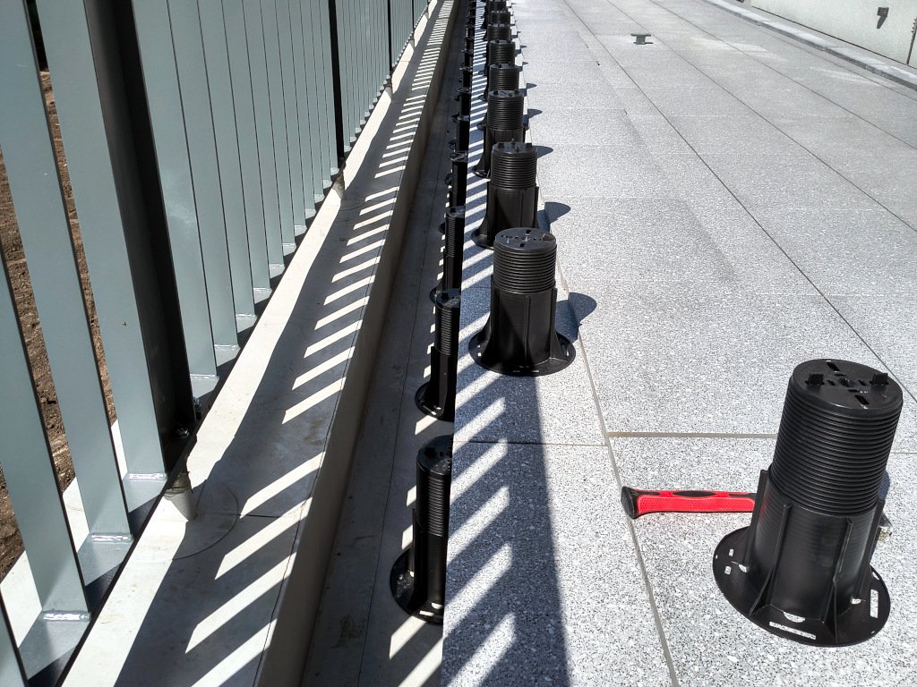 Možnost výškově nastavit každou podložku nezávisle regulačním klíčem i potom, co je dlažba již položena, Vám umožní dosáhnout dokonale rovné terasy.