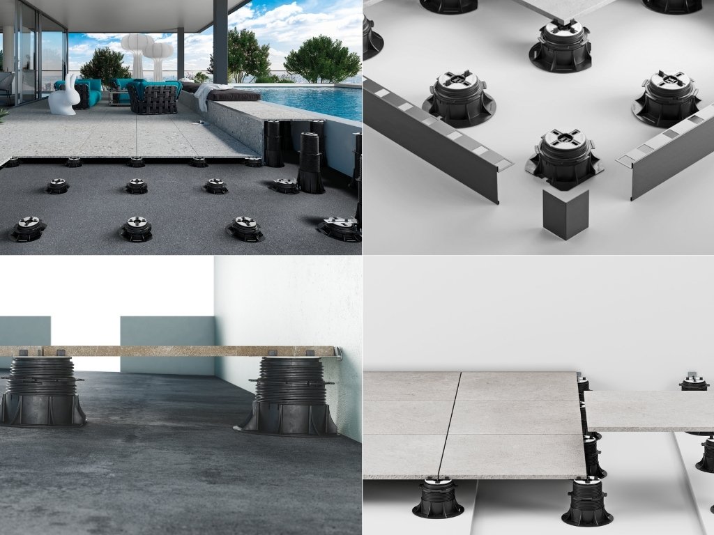 Unikátní patentovaná konstrukce výkyvné hlavy PR, zajišťuje automatickou regulaci sklonu až do 5% spádu podkladové vrstvy pro PR1, PR2 a PR3. Pro terč PRIME PR0 je samonivalace do 2,5 % spádu. Toto řešení zrychluje instalaci terasy a šetří Váš čas.